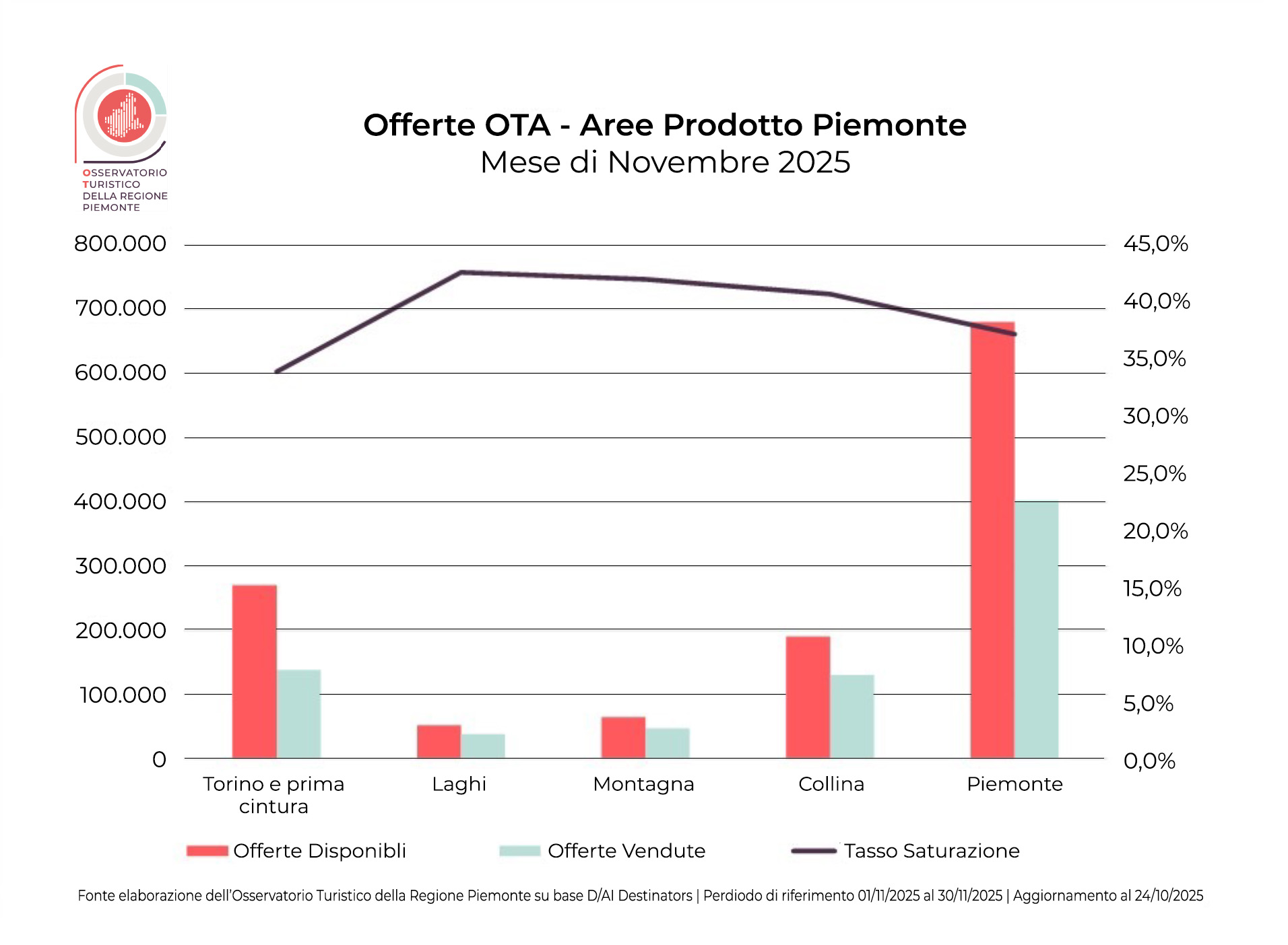 Per il week-end di Ognissanti, il tasso di saturazione dell’offerta veicolata sulle OTA è pari al 42,9%. Dal monitoraggio delle offerte sui canali delle…